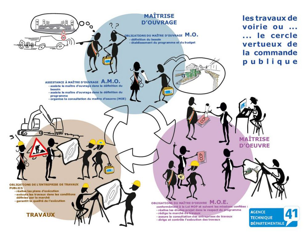 Exemple : Une commune qui veut créer un aménagement de sécurité routière. - Le Maître d’Œuvre (MOE) : C’est le concepteur/réalisateur. C’est lui qui traduit les besoins du client en solutions techniques et qui dirige l’exécution des travaux (le « comment »).